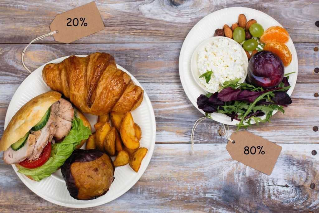 - Première règle, la plus importante, le Saint-Graal de la nutrition : la règle du 80/20. Cette règle nous dit qu’il faut que 80% de notre alimentation provienne d’aliments sains et non transformés. Pour les 20% restants, ils sont consacrés aux « moments de plaisir », c’est-à-dire les aliments qui nous font vraiment plaisir. Par exemple, si votre régime alimentaire vous dit de manger 10.000 calories par semaines, 2.000 calories pourront être consacrées à des aliments qui vous font plaisir (comme des cheatmeals).